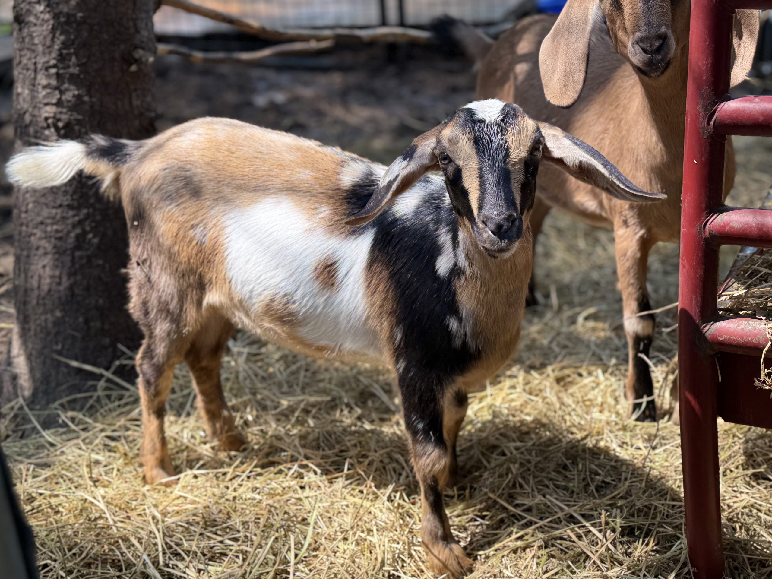 Every year, we have a limited number of Mini Nubian dairy goats available, registrable through MDGA and/or TMGR. We focus on actual important things like personality, health, udders, and conformation before the flashy stuff, but we do have some goats who have moonspots, are polled, and have blue eyes. There’s around a 50% chance that their offspring would inherit those traits.